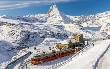 Nenhuma viagem à Zermatt, na Suíça, estaria completa sem o passeio até o cume de Gornergrat. O local é acessível por meio de um antigo trem de cremalheira, que liga a cidade ao mirante da montanha, a 3.089 metros de altitude. No topo, você tem uma visão clara da famosa Matterhorn, além da geleira Gorner e de dezenas de outros picos de grande elevação. Mesmo com muita gente na alta temporada, há muito espaço para aproveitar a vista e tirar belas fotografias de viagem.